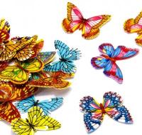 Нестандартный элемент вафельного декора - вафельные бабочки. Они сделаны в виде, приближенном к оригинальному, и красиво прорисованы. Легкие летние торты, в том числе свадебные, оформленные такими бабочками, смотрятся весьма нарядно и эффектно.